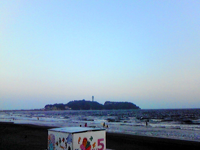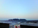 江ノ島をバックに夕日を見つめて、いいですねぇ~♪