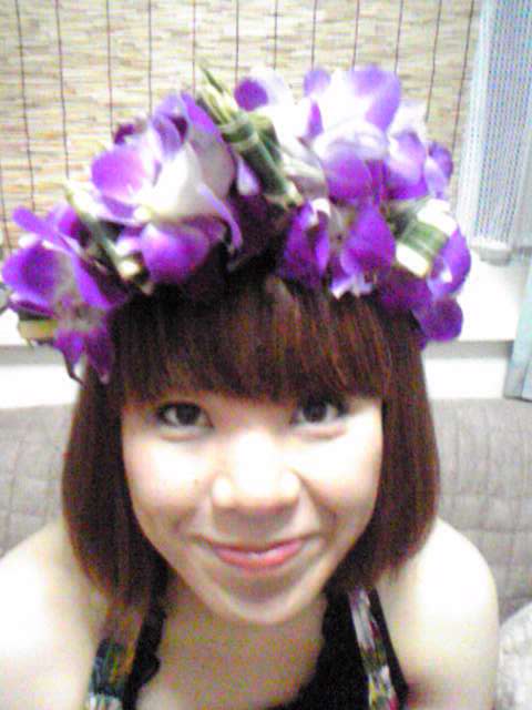 お花で作った「レイ」と可愛いピンクの花束でした。